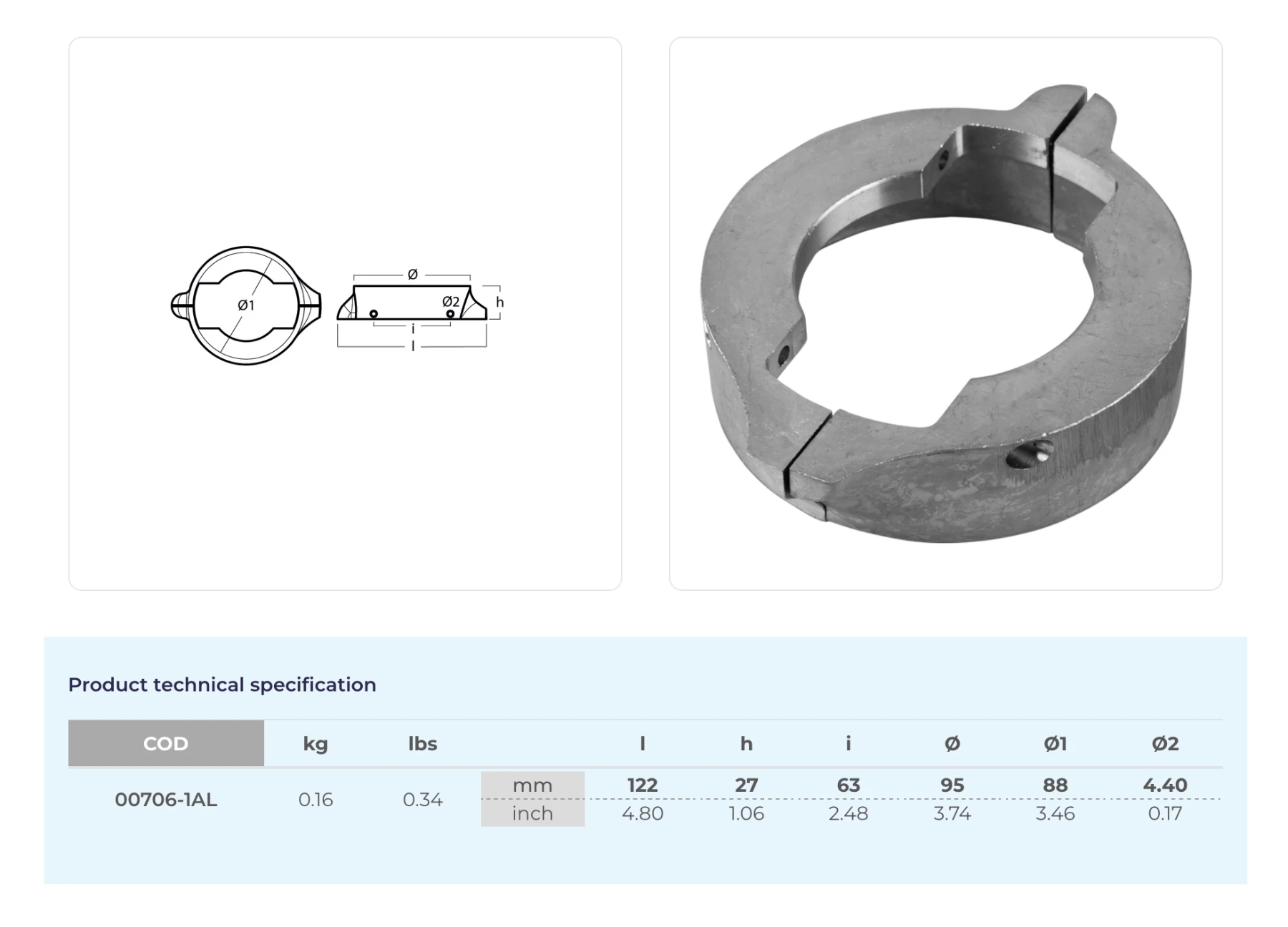 Anod i aluminium, 00706-1AL, Volvo Penta 120S