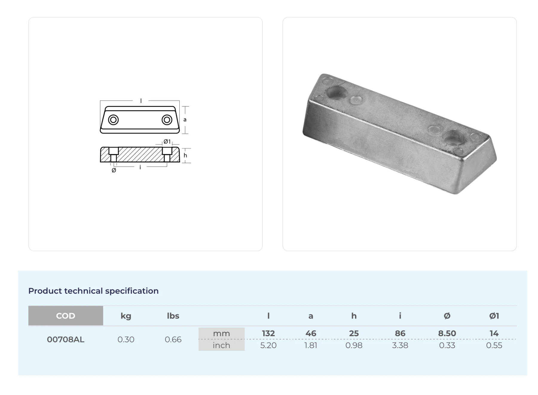 Anod i aluminium, (00708AL), 852835. Sköldanod för Volvo 290DP.