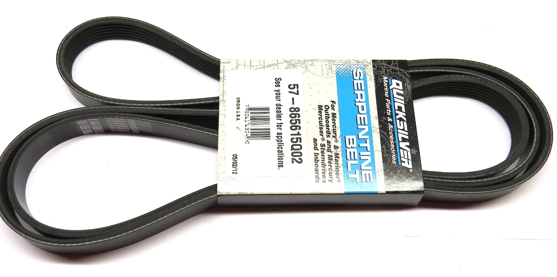 Mercruiser originalrem 57-865615Q02 eller 57-865615-002. Längd ca 1142mm X 2 (dvs remmen är mätt tvärs över) och Bredd 20mm. Passar: bl.a 496 / 8,1L