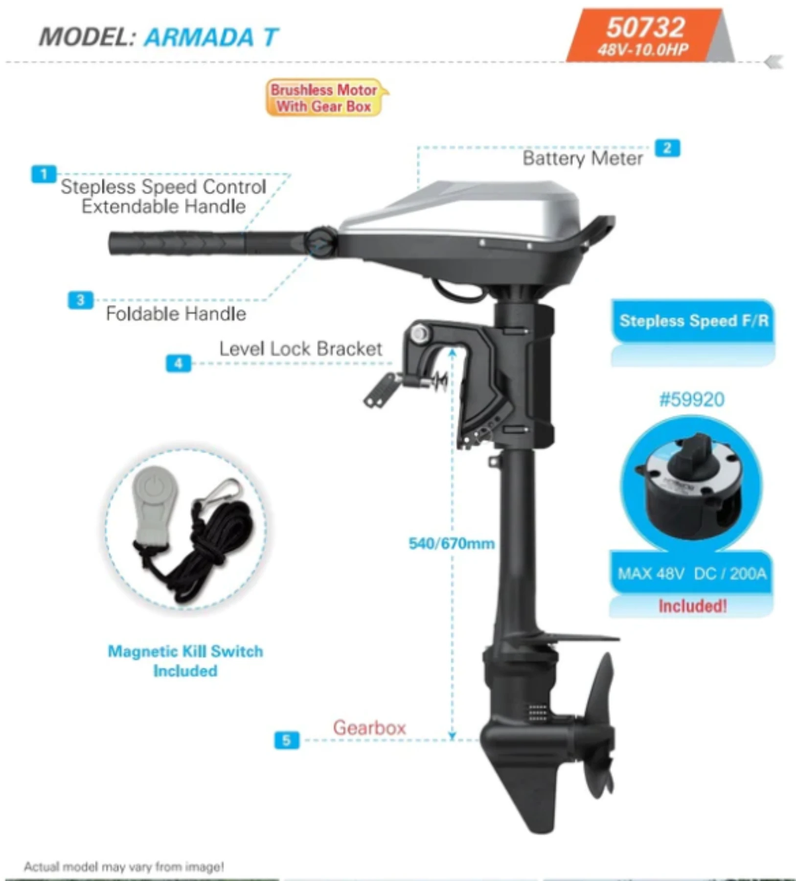 Nu finns det ett riktigt alternativ med kraft nog att driva större båtar. Med Armada kan du ersätta en 6-8 hk bensinmotor. Njut av omedelbar kraft och tystare gång. Den borstlösa motorn ger en steglös kontroll av varvtalet.