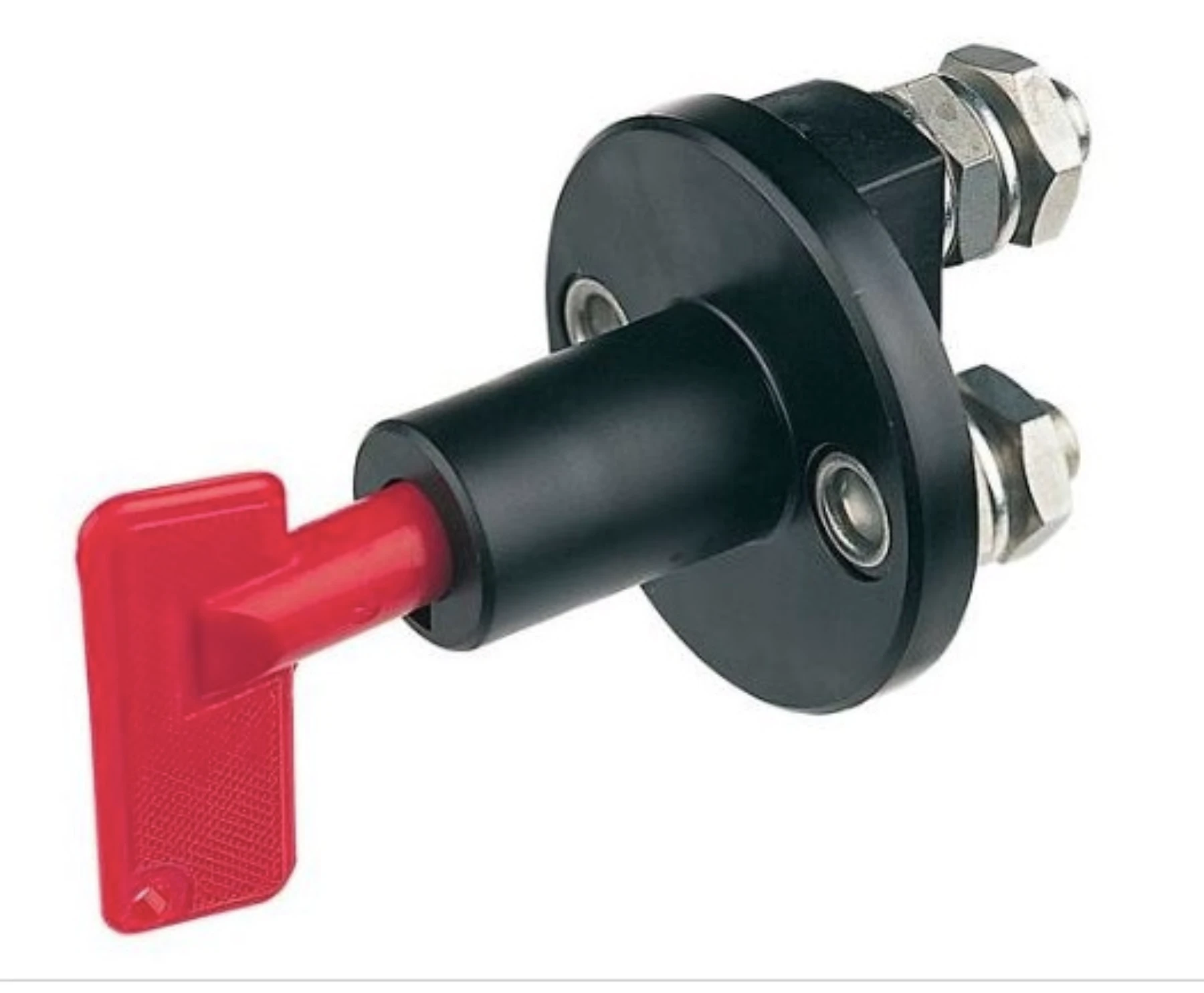 Huvudsrömbrytare med kontinuerlig kapacitet på 100A @ 12V / 50A @ 24V med löstagbar nyckel i off-läget. Kontruerad i slagtålig plast.