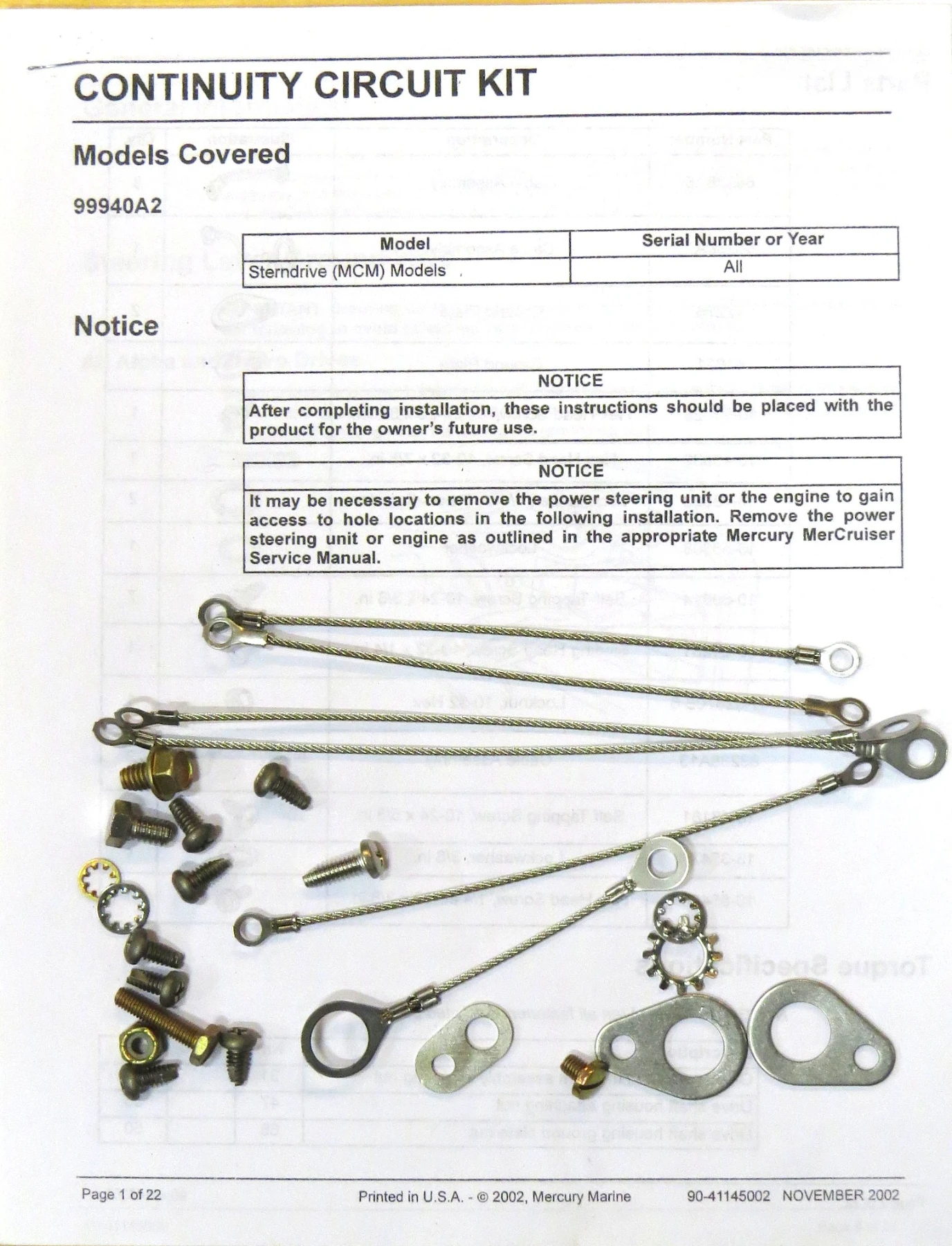 Mercruiser original jordningskit för skölden. Komplett med vajer och skruv.