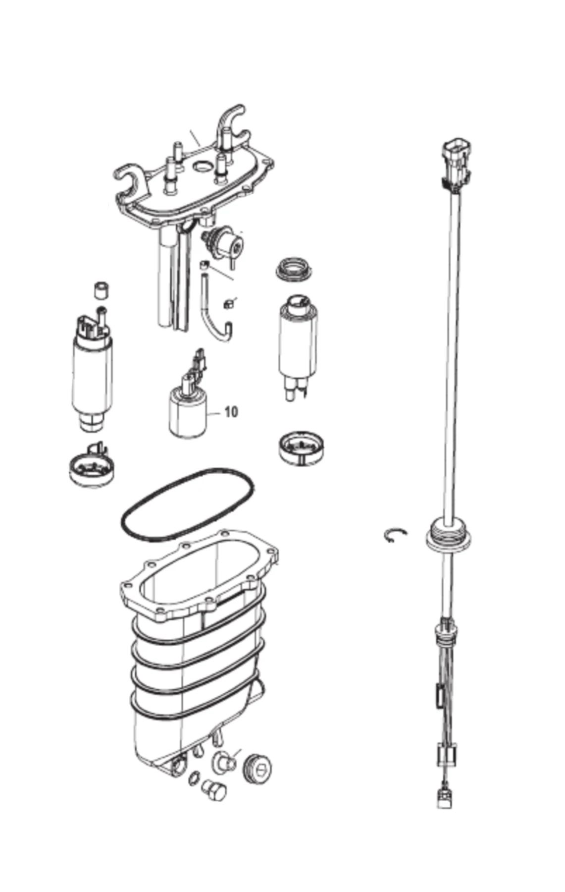 Komplett bränslemodul till Verado, svarta lådan med 2st bränslepumpar och flottör (Mercury original).