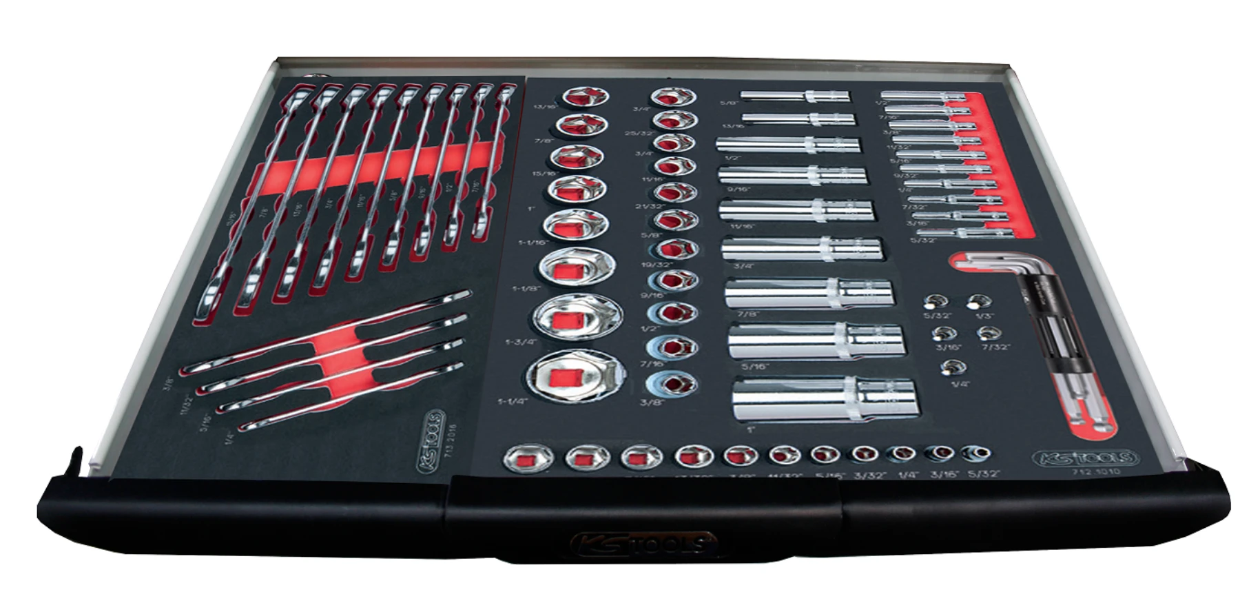 19 Hylsor 1/2’’: 3/8’’ – 7/16’’ – 1/2’’ – 9/16’’ – 19/32’’- 5/8’’ – 21/32’’ – 11/16’’ – 3/4’’ – 25/32’’-13/16’’ – 7/8’’ – 15/16’’ – 31/32’’ – 1’’- 1,1/16’’- 1,1/8’’ – 1,3/16’’ – 1,1/4’’