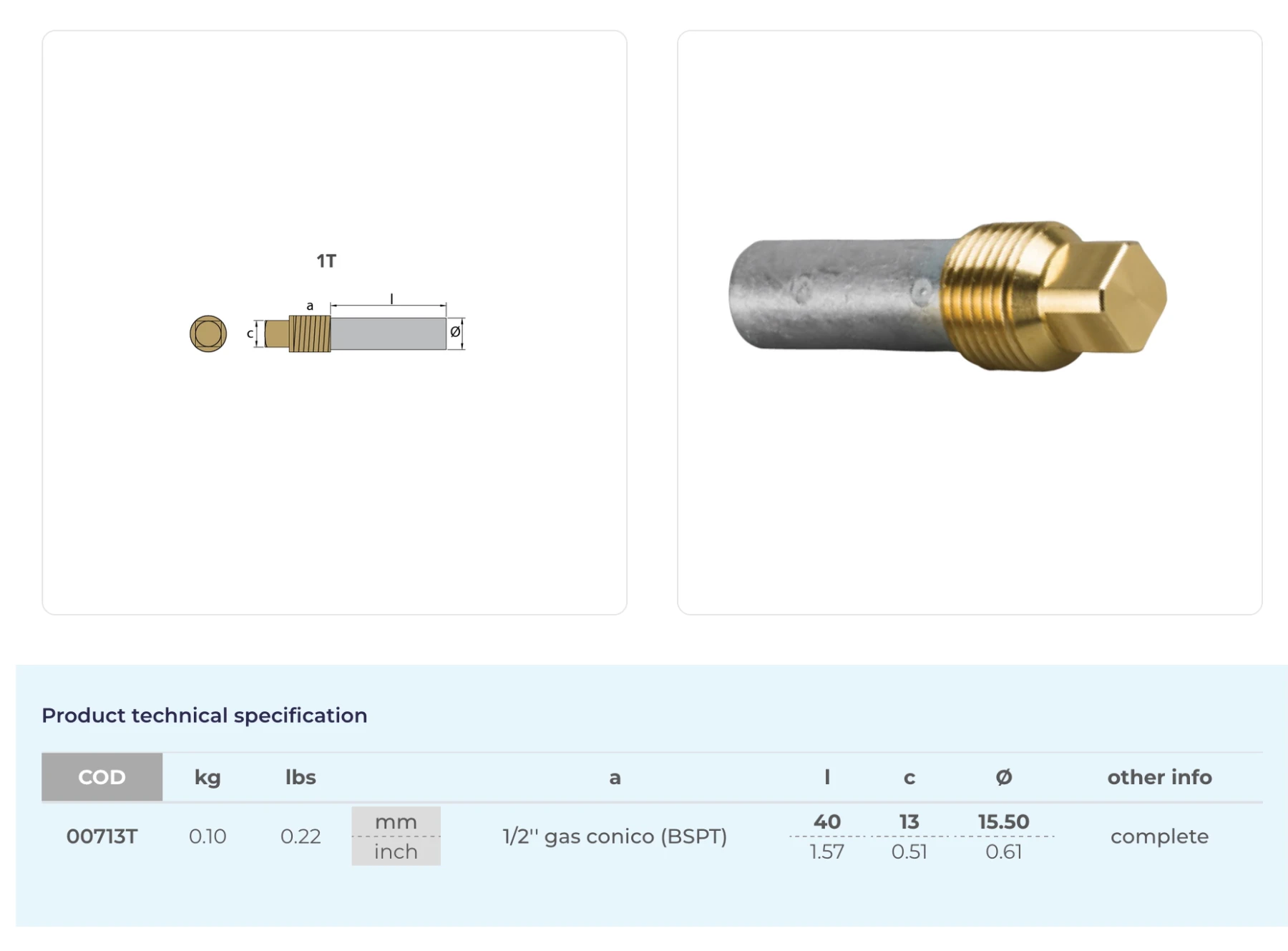 Anod för Volvo bensinmotorer V6, V8 värmeväxlare. Komplett med hållare. För att byta anoden nästa gång, beställ 00713.