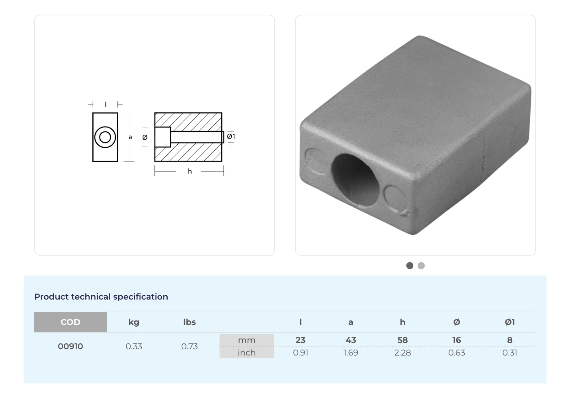Anod i magnesium (00910MG), 398331, 433458 Evinrude/Johnson V4, V6