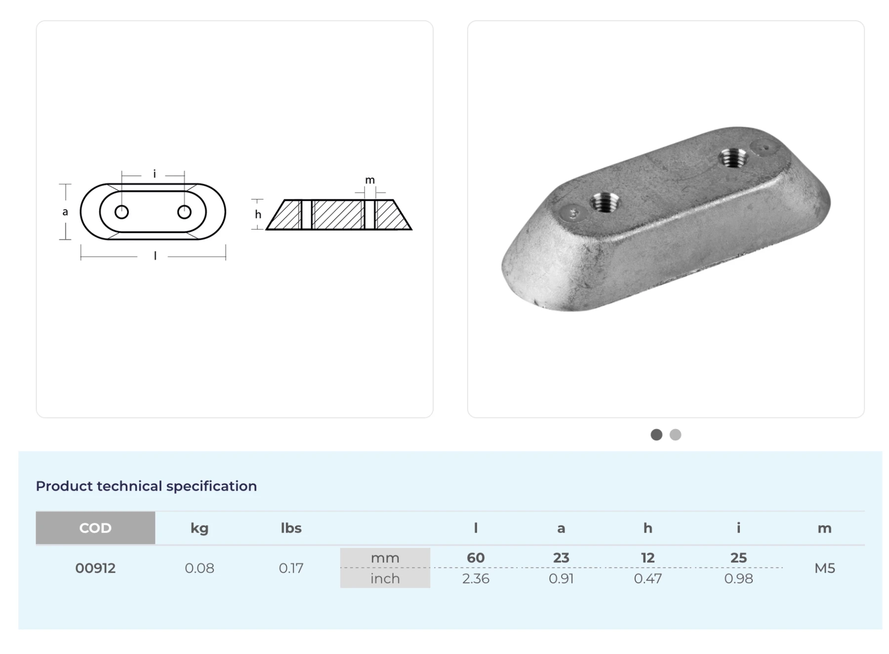 Anod i Magnesium (00912MG) 173029, 123009, 327606. Evinrude/Johnson 2-150hk.