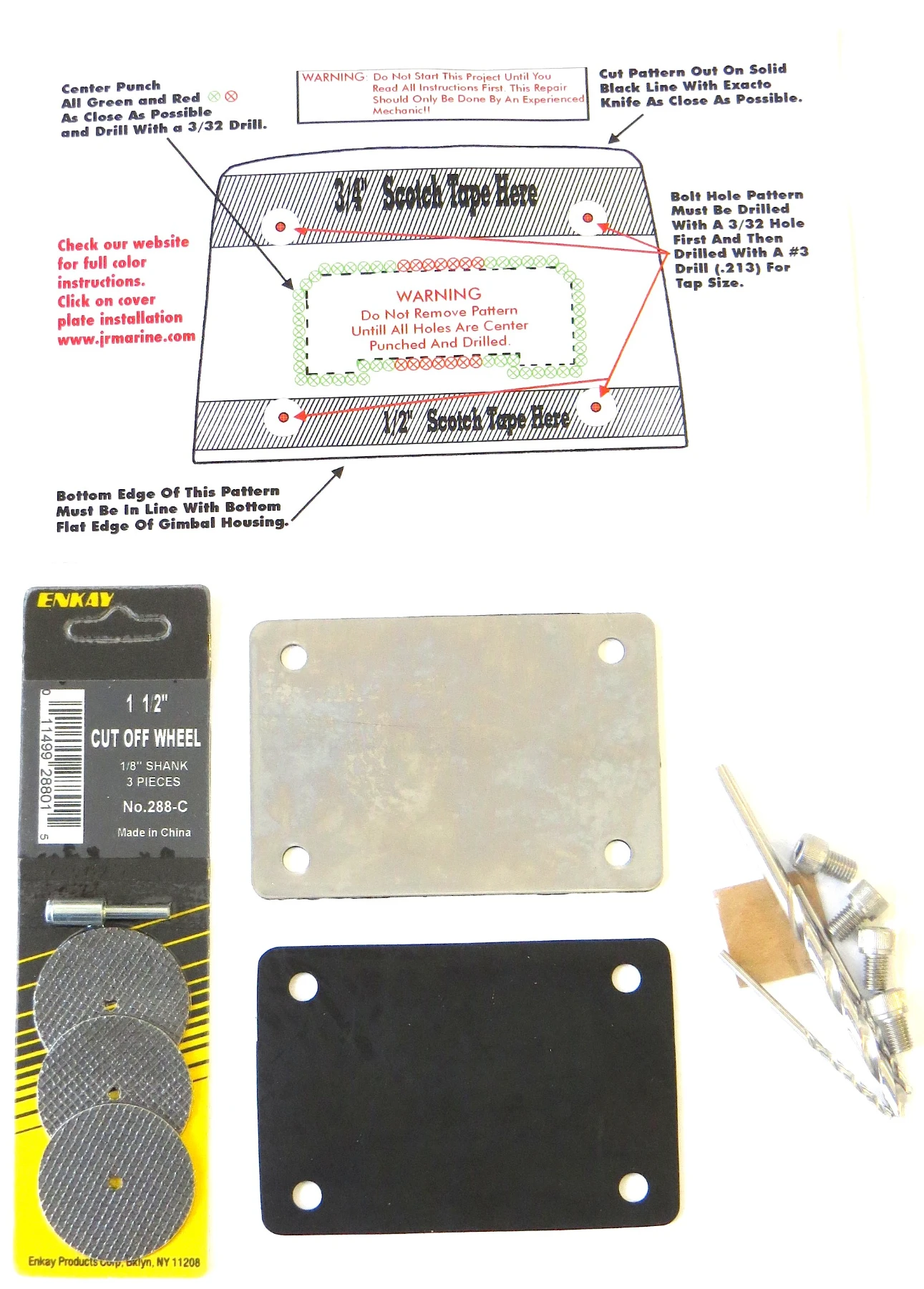 Komplett kit med täckbricka, skruvar, borrar, packning och slipskivor. För att enkelt komma åt styrtappen vid styrtappsrenovering på Bravo och Alphasköldar.